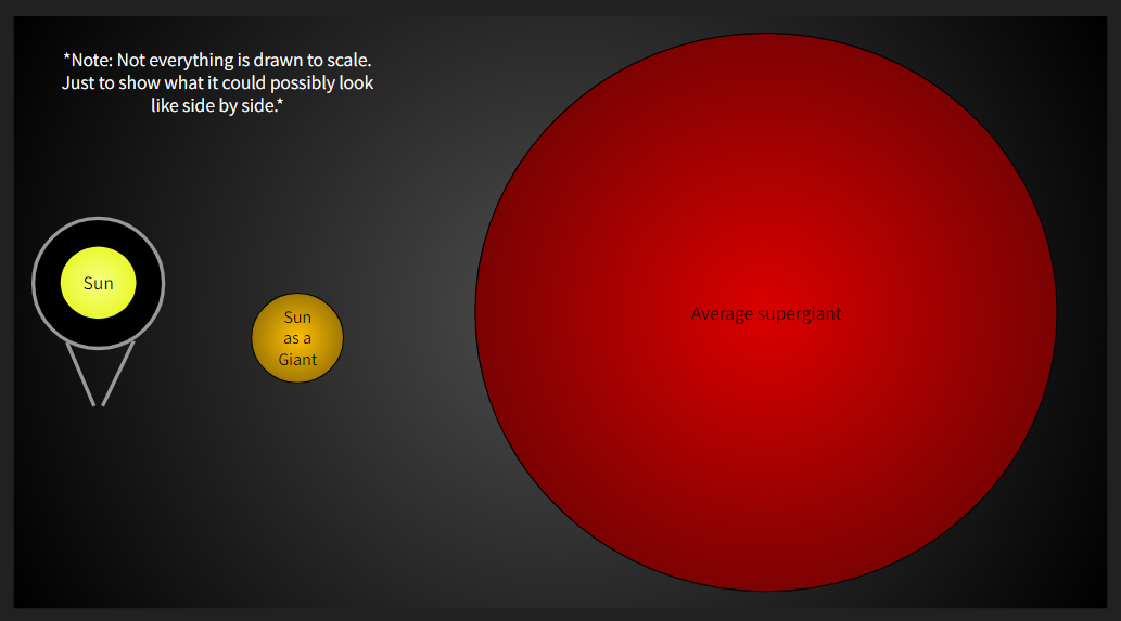 As depressing as this may be, we still have the high-mass star. A high-mass star, unlike low-mass, does not excel in longevity. After a successful high-mass star is formed, it will be catapulted into a massive star as it enters its main-sequence stage. Already consuming huge amounts of hydrogen, the massive star will remain a massive star for no more than a 100 million years. Keep in mind that this time is shorter the bigger the star. The growth isn’t stunted at its “massive” stage, as following the main-sequence it will grow even further, becoming a supergiant star. During the growth to a supergiant, the star’s radius will expand anywhere from 1.5 to 7.5 times its original size. It may not seem like a lot until you realize that a massive star is anywhere from 200 to 800 times the size of the sun, the enlargement to a supergiant makes it around 1500 times larger than the sun. The lifetime of the supergiant stage is around a few million years but no longer than 30 million.